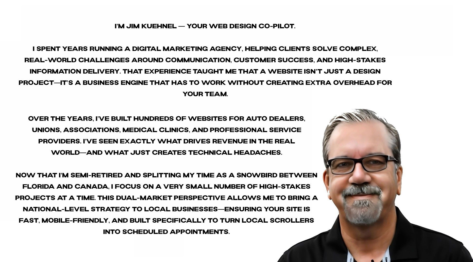 I diagnose the leaks in your conversion path and build high-speed, 'Rock Solid' websites from scratch that turn visitors into scheduled appointments.
